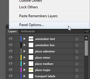 Layers panel's Panel Options menu command