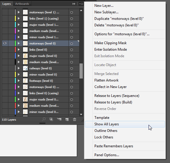 Layers panel's Show Layers menu command