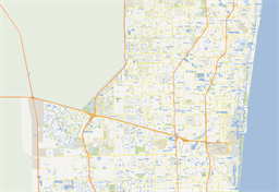 A map of the Miami and Fort Lauderdale area with major places and roads
