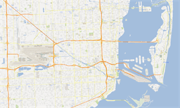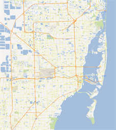 A map of the Miami and Fort Lauderdale area with major places and roads