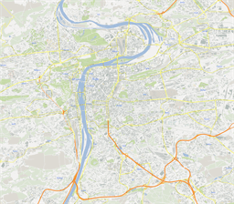 Minimalistic black and white theme showing transport network (in multiple layers) without any text labels
