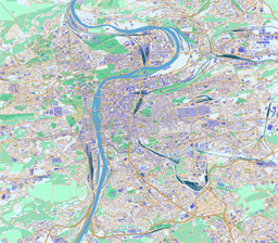 A black & white, no labels high-detailed map of Prague metropolitan area